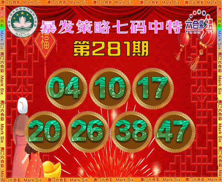 281期:【暴发策略】 🍁七码中特🍁【04.10.17.20.26.38.47】开:47